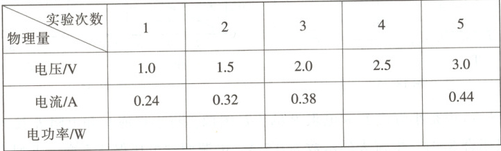 $W$。分析表中数据可得出结论:小灯泡工作时,消耗的电功率随电压的增大而增大