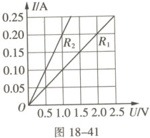 2. 如图18-41所示为电阻$R_1$和$R_2$的$I-U$图像,$R_1:R_2=$