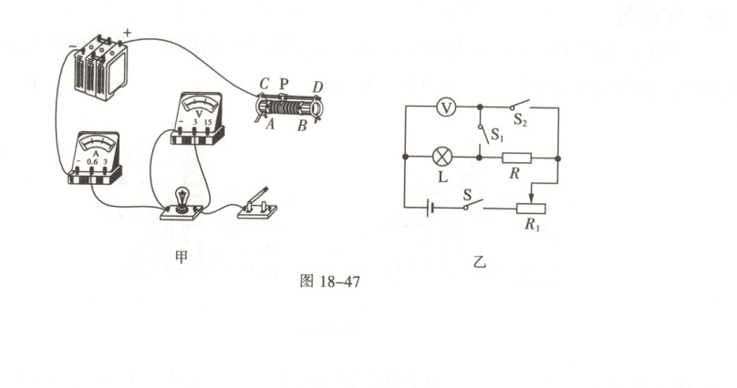 2. 小明设计如图18-47甲的电路图,用来测量额定电压为“$2.5\ V$”小灯泡的电功率。各元件都完好,电源电压保持不变。
