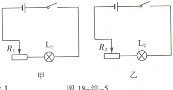 6. 如图18-综-5所示,将标有“$6 V 3 W$”的灯泡$L_1$和标有“$12 V 3 W$”的同材料制成的灯泡$L_2$按照甲、乙两种方式连接,两电路中的电源电压均为$U$且保持不变,闭合开关,通过分别调节两个滑动变阻器$R_1$和$R_2$使两个灯泡都正常发光,对此下列有关说法中正确的是(