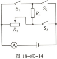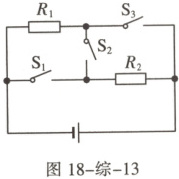 1. 如图18-综-13,电源电压为$6 V$,两个定值电阻$R_1=100\Omega$,$R_2=300\Omega$,请计算: