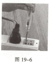 1. 在跨学科实践课上,同学们开展了“使用测电笔辨别相线和中性线”的活动。如图 19-6 所示,测电笔的氖管发光,说明被检测的插孔与