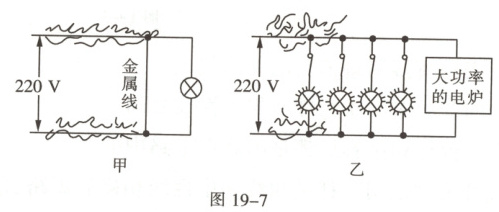 2. 家庭电路中的电线燃烧起来,图 19-7 甲产生的原因是