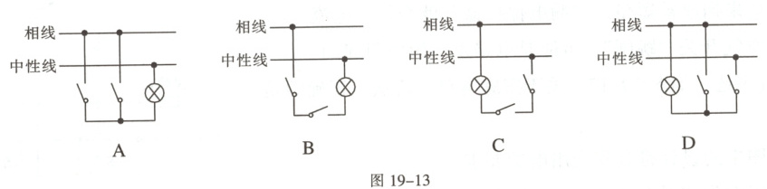 1.B[解析]由题可知,若两开关并联,则只要闭合一个开关,灯即发光;若两开关串联,则只有两开关都闭合时电路才能接通;为保证安全开关应接在相线上。