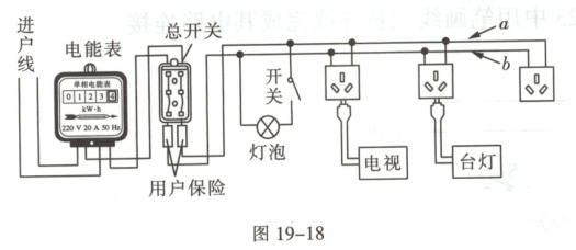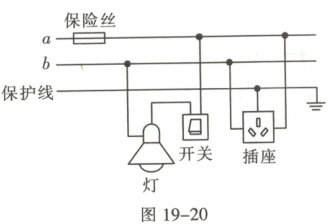 3. 如图 19-20 是小明家规范电路的简化电路图,根据电路图,小明判断出 a 导线是相线,b 导线是中性线,请你写出小明判断的依据: