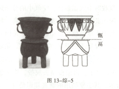 7. (多选)如图13-综-5所示是我国先秦时期的蒸食用具甗(yǎn),它由青铜材料铸造而成,分为上、下两部分:下半部是鬲(lì),样子像鼎、用于煮水;上半部是甑(zèng);底部有网眼、可通蒸汽,内部放置食物。下列说法正确的是(