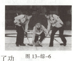 8. (多选)中国女子冰壶队夺得世界女子冰壶锦标赛冠军,让很多人对冰壶比赛产生了浓厚的兴趣。冰壶比赛的照片如图13-综-6所示,下列关于冰壶运动的说法中,正确的是(