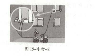 3. (常州)如图19-中考-8所示,有居民将电线插座从窗口悬挂至室外,给电瓶车充电。这种“飞线”充电方式存在安全隐患:①夜晚气温下降,空气中的水蒸气