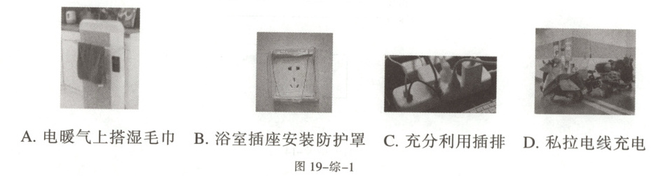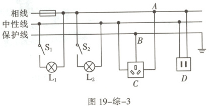 3. 学习家庭电路相关知识后,小明对如图 19-综-3 设计的家庭电路的认识正确的是 (