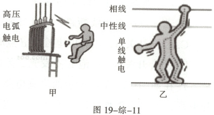 (选填 “高压” 或 “低压”) 带电体产生电弧,与大地连通形成通路,造成触电。(2) 图乙中,触电的原因是站在大地上的人体接触相线,通过