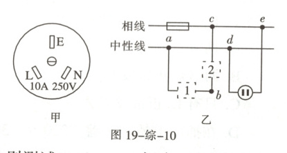 2. 如图 19-综-10 甲所示,大功率家用电器要使用三孔插座,用于接地的导线应该接在插座的孔