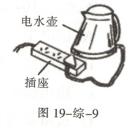V。如图 19-综-9,用电水壶烧水时,若不慎有水溅入旁边的插座里,可能会导致电路短路