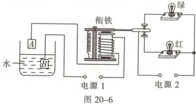 6. 生活应用 如图 20-6 是一种水位自动报警器的原理图。关于它的工作原理下列说法正确的是 (