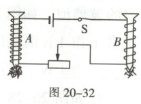 (3)将两个已知磁极的小磁针分别放在通电螺线管左右两端,小磁针静止时,N极指向如图20-32,则通电螺线管的左端是