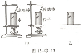 (1)为了探究物质吸热升温的属性,小明在两个易拉罐中分别装入质量相等的水和沙子(如图13-综-13甲所示),实验中还需要的实验器材是