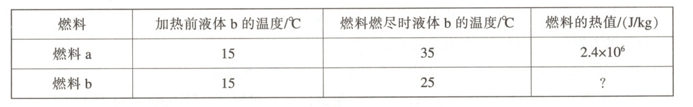 来比较燃料燃烧放出热量的多少。实验数据记录如表:(3) 根据表中数据,计算出燃料 b 的热值是