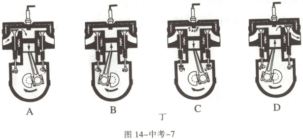 (1)四冲程循环理论提及的“巨大爆发力”由图丁中的