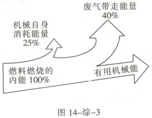 4. 汽车发动机一般是汽油机,汽油的热值为$4.5×10^7$ J/kg。某内燃机的能量流向如图14-综-3所示,下列说法正确的是(