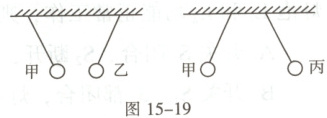 1. 甲、乙、丙三个轻质泡沫小球用绝缘细线悬挂在天花板上,它们之间相互作用时的场景如图15-19所示,已知丙球所带的电荷与用毛皮摩擦过的橡胶棒所带的电荷相同,下列判断正确的是(