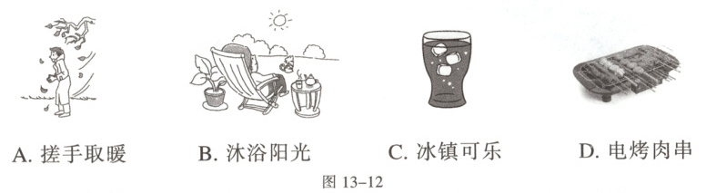 3. 如图13-12所示的四幅图中,改变内能的方式与其他三幅图明显不同的是(