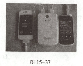 2. 如图15-37所示是充电宝同时为两部手机充电。充电时,手机中的锂电池相当于电路中的