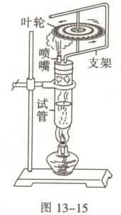 3.跨学科实践 小明制作了一个小蒸汽轮机,如图13-15所示。酒精燃烧时将化学能转化为内能,这是通过