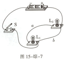 7. (多选)请你仔细观察如图 15-综-7 所示的实物电路,判断下列说法正确的是(