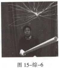 6. (多选)课堂上,老师将塑料绳撕成丝状带,分别用羊毛摩擦塑料丝带和 PVC 管,然后将塑料丝带放在 PVC 管上方,塑料丝带就会像章鱼一样悬在空中,这就是神奇的静电“章鱼”实验,如图 15-综-6 所示。若摩擦后的 PVC 管带负电荷,关于“章鱼”实验的说法正确的是(