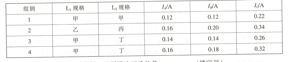 (5)A.测量总有误差,A错误;B.若电流表使用前指针在零刻线偏右的位置,则每次测量值比真实值偏大,由并联电路电流的规律,IA + IB总是略大于Ic,B正确;C.选用多组实验数据,可避免实验的偶然性,使结论更具普遍性,C错误;D.串联电路各处的电流相等,D错误。