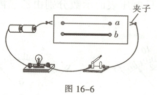 6. (多选) 小明用如图 16-6 所示的器材探究“影响电阻大小的因素”。a、b 为长度一样的镍铬合金丝,b 比 a 的横截面积大。关于此实验,下列说法正确的是(