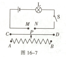 7. (多选) 某同学安装了一个可以调节亮度的电灯 L,如图 16-7 所示,开关闭合后,当滑动变阻器的滑片从 A 向 B 移动的过程中,电灯的亮度逐渐变暗,正确的连接方式是(
