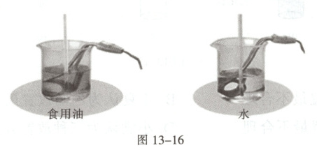 为了比较不同物质吸收的热量和哪些因素有关,小明用两个相同的装置做了如图13-16所示的实验。实验数据记录如下表。