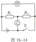 1. 如图16-14所示电路中,要使两个电阻并联,甲、乙应该接入的是 (