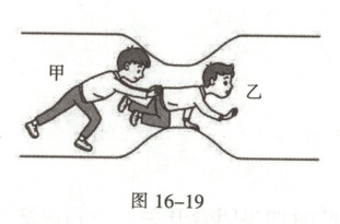 1. 如图16-19所示情境粗略却形象地反映了电流和电压、电阻的关系,图中小孩 (选填“甲”或“乙”) 可模拟为电流,图中信息还反映出导体的电阻与导体的