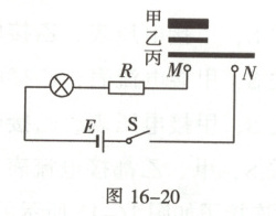 2. 小明同学利用如图16-20所示电路,探究“导体电阻大小与其横截面积的关系”,如图16-20中甲、乙、丙是镍铬合金丝,甲、乙长度相同;乙、丙粗细相同。实验中,根据