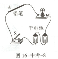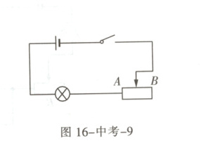 2.(成都)小佑收集了很多材料和长度都相同但粗细不同的铅笔芯。如图 16-中考-8 所示,是他用身边的器材自制的简易调光灯电路。闭合开关,夹子 A 从左向右移动的过程中灯泡亮度应该