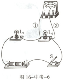 8.(青岛)(多选)小明探究串联电路的电压规律,连接了如图 16-中考-6 所示的电路,下列做法正确的是(