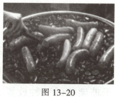 1.生活应用 如图13-20所示,某店主加热烤肠的情景,增加烤肠内能的方法是