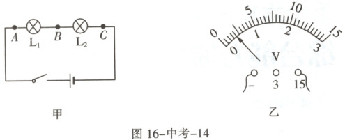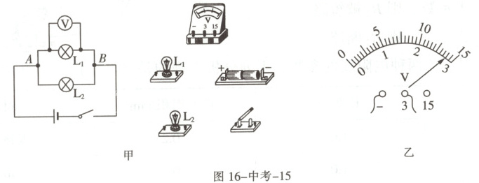 (1)如图 16-中考-15 甲,根据电路图,用笔画线表示导线,将实物连接起来。