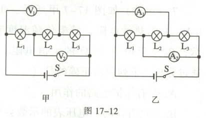 6. 如图 17-12 甲所示,闭合开关 S,此时电路中的三个小灯泡
