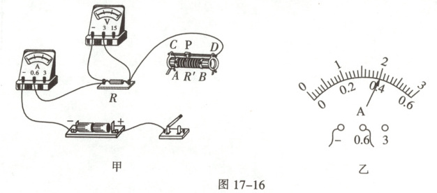 2. 某实验小组用图 17-16 甲所示电路进行“探究电压一定时,电流与电阻的关系”实验。