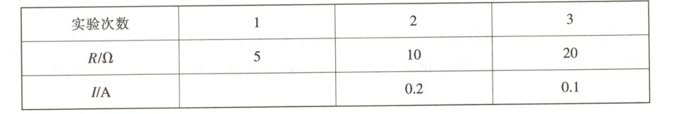 $V$时,读出电流表的示数。再更换$20\ \Omega$的定值电阻继续实验,实验数据记录在表格中。由实验数据可知:当导体两端的电压一定时,通过导体的电流与导体的电阻成反比