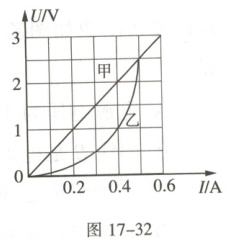 1. 如图17-32所示是电阻甲和乙的$U-I$图像,下列对图像信息做出的判断中正确的是 (