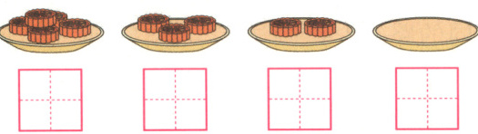 1 月饼是我国的传统美食之一。数一数,盘子里分别有几个