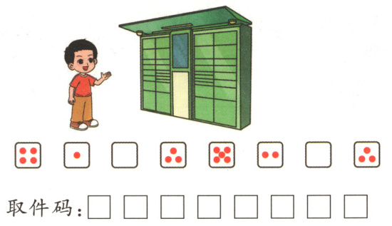 4 妈妈让奇思帮忙取快递,他用圆点表示数字,摆出了快递的取件码。你知道取件码是多少吗?写一写。