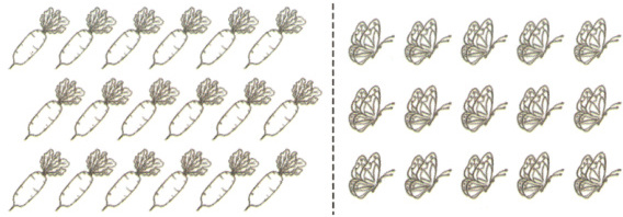 ① 左半部分(萝卜图):用竖线划分的前 10 个萝卜圈出来并涂上颜色。
