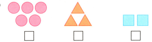 2 比一比,最多的画“$√$”,最少的画“$○$”。