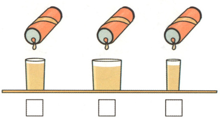 1 下面哪杯橙汁最多,在下面画“$√$”。