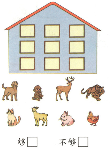 5 每个动物住一间,房间够住吗?(在正确答案后面的$□$里画“√”)