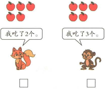 6 谁剩下的苹果多,就在谁的下面画“√”。